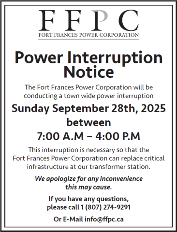 The Fort Frances Power Corporation will be conducting a town wide power interruption on: